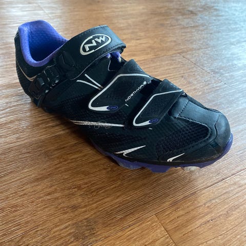 Komfortable sykkelsko fra Northwave. I meget bra stand. De har ingen feil, skader eller lignende. Passer til sykling på våren og sommeren. God ventilasjon.