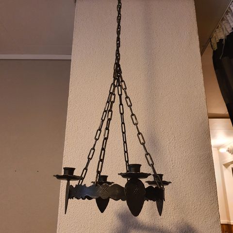 Smijernslysestake til vegg, produsert av Arthur Krogdal, Jæren. Den er 37 cm høy og stikker ca 15 cm ut fra veggen.