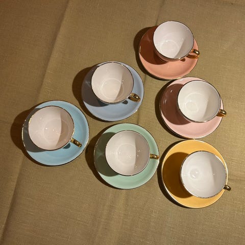 6 stk nesten ubrukte og pene mokka-kopper med underskål.