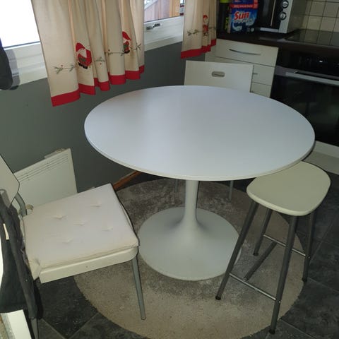 Pent brukt rundt spisebord