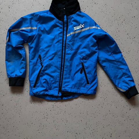 Swix langrennsjakke str 116. Blå. Refleksen på bryst er litt løs, se bilde 3.