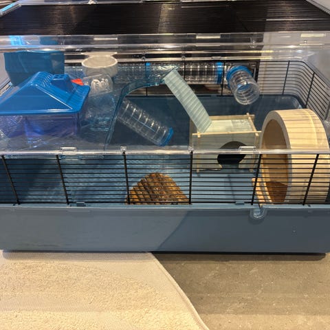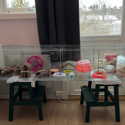 Stort glass akvarie brukt til hamster selges, noe utsyr kan medfølge om ønskelig.