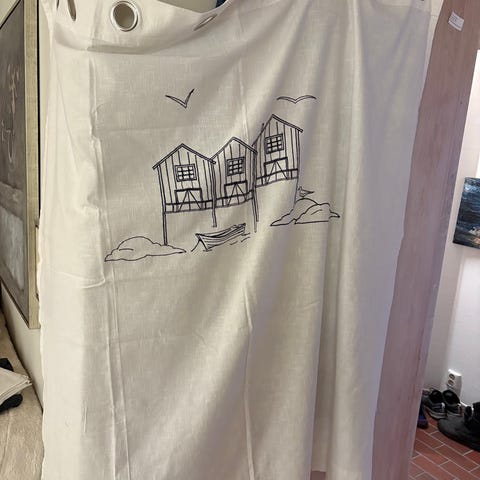 (Gardinen er ren, men ikke strøket grunnet oppbevaring)