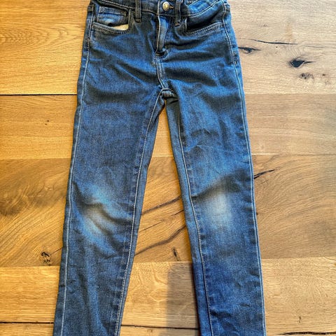 KappAhl LAB Industries jeans for gutt i størrelse 134. Jeansene er blå og laget i denim-materiale. De har lommer foran og bak, samt beltehemper rundt midjen.
