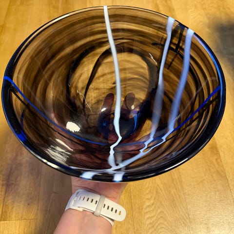 Stor glasskål i frosta glass. Fint rille mønster. Kr 55,.
