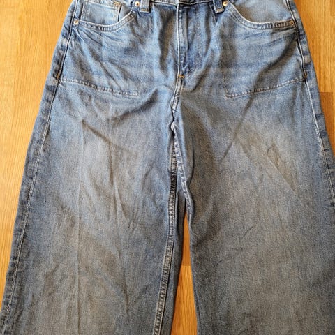 Blå unisex jeans av H&M størrelse 170 med justerbar midje. Buksene er som ny, bare brukt én gang