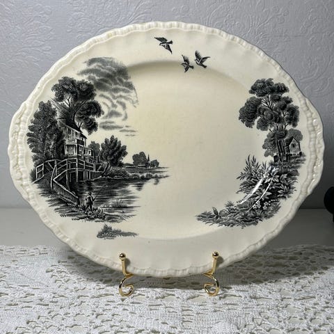 Stort fat fra Grindley som produserte servise i steintøy og jernstein, ofte med mønstre som ble solgt i Australia, New Zealand, Canada og USA.