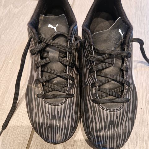 Puma fotballsko i størrelse 37, svart farge. Laget i syntetisk materiale med knotter for bruk på gressbaner. Passer for barn eller ungdom.