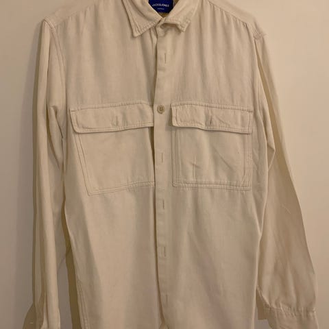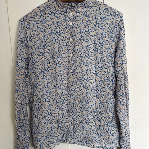 Pent brukt skjorte, kan ha noen normale bruksmerker. V-hals og knapping. 100% bomull. Den er merket med str. M, men er god i størrelsen og kan brukes som en L også.