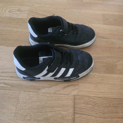 Duffy unisex slip-on sko i størrelse 34. Skoene er svarte med hvit såle og har et enkelt design uten lisser. Passer for for både gutt og jente.