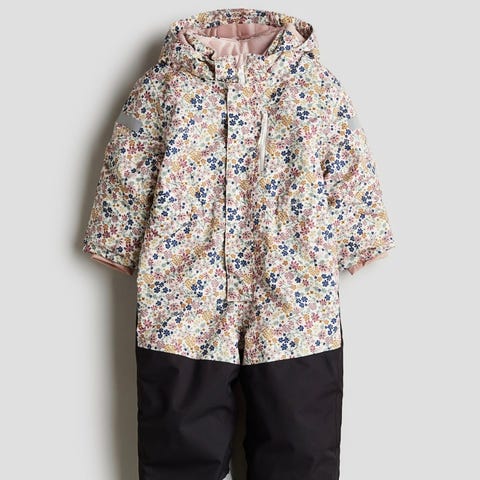 God og varm vinterdress i størrelse 104. Dressen er grå med bilmønster og har hette med fuskepels.