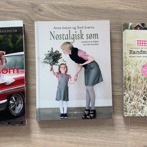 En samling på 11 håndarbeidsbøker/ blader med fokus på patchwork, lappeteknikk og naturinspirerte materialer. Bøkene inkluderer ulike mønstre og teknikker for quilting og dekorative tekstilarbeider. Bøkene koster 50kr pr stk, bladene 20kr. Ved kjøp av alt 300kr pluss porto.
