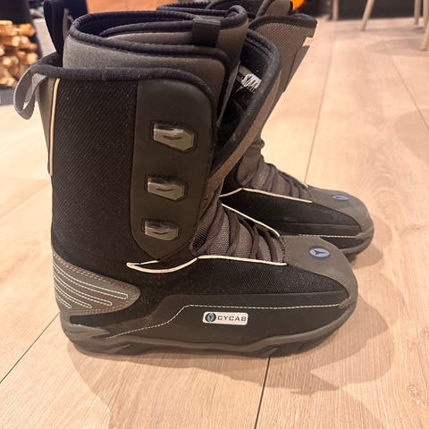 Pent brukte Cycab snowboard boots str 44 til salgs. Fine boots fra en anerkjent produsent av snowboard og snowboardutstyr. Se ellers bildene for detaljer.