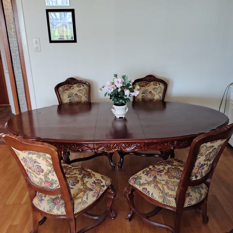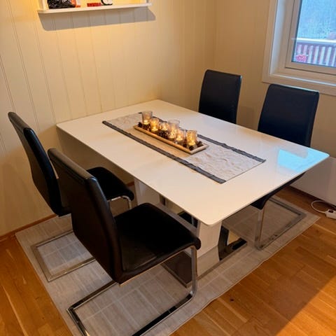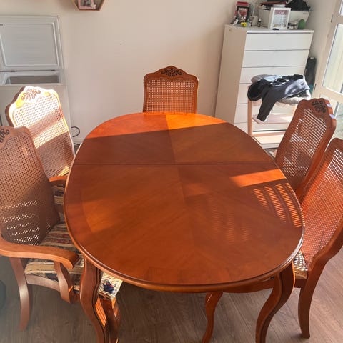 Brukt spisebord med 6 stoler .Passer for 8 stykker .