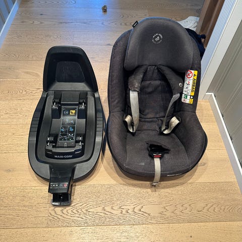 Pent brukt bilsete og Maxi Cosi 2way Family base med ISOfix.