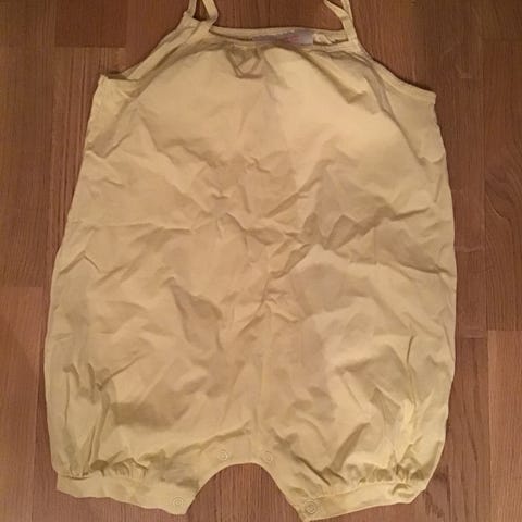 Zara buksedrakt for barn i størrelse 92, designet for jenter. Buksedrakten er brun med blå broderidetaljer og har justerbare stropper med knappelukking. Materialet er strikket, og plagget har lommer på sidene.