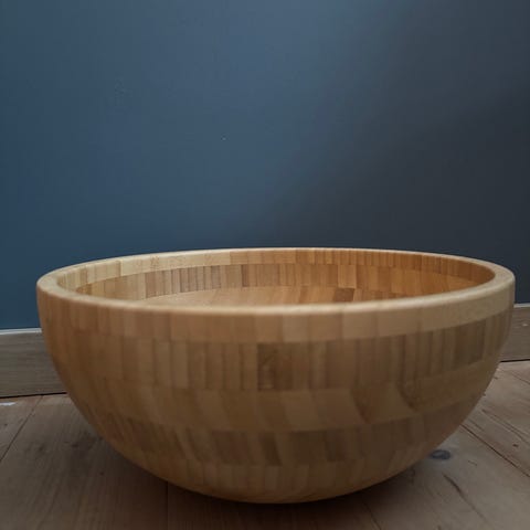 IKEA Salatbolle laget av bambus. Passer til servering av salater eller annen mat. Naturlig farge og materiale.