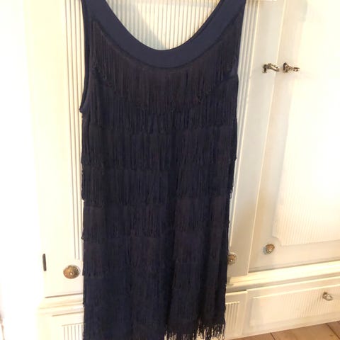 Skjolen har en blå farge og er laget av 100% viskose med detaljer i polyester og elastan. Den har tynne skulderstropper og et plissert design, egnet for formelle anledninger, kveldsbruk eller julebord!!