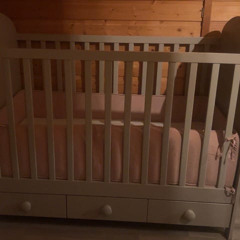 Kjøpt på sprell for ca 8 år siden, brukt til ett barn. Kostet ca 10 lapper når den var ny (!) exs madrass. Har slitasjeskader men er ellers i god stand - madrass kan følge med men det er enkelt å skjære til ny i skumgummi også 👍 sprell sengekant passer sengen og kan kjøpes for 200