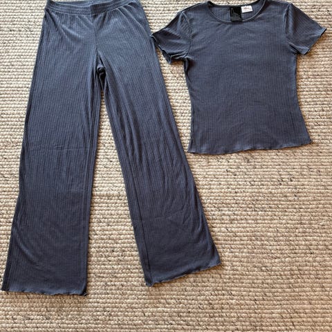 Klessett fra Vila, passer i lengde til noen som er 160. Behagelig å ha på. Brukt 1 gang i jula. Topp i størrelse M, bukse i størrelse L