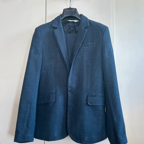 Smalt og pent snitt med sjalkrage i sort satin, klassiske lommer og helfôret innside. Formell nok til bryllup og konfirmasjon, sofistikert nok til Valentines-date, og absolutt brukbar til smart casual med mørke jeans og skjorte.