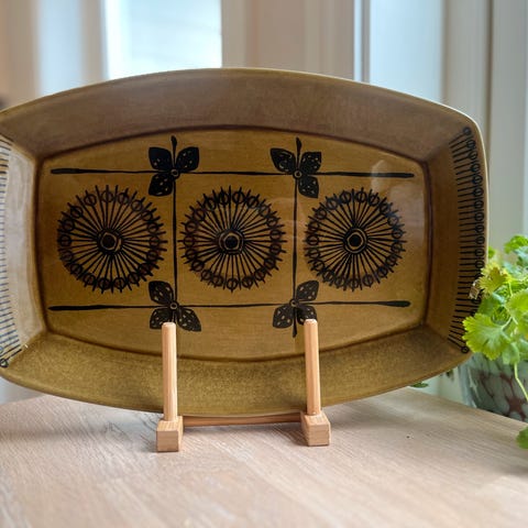 Fremstår egentlig som nytt, men har en liten brun stripe i glasuren, se foto.