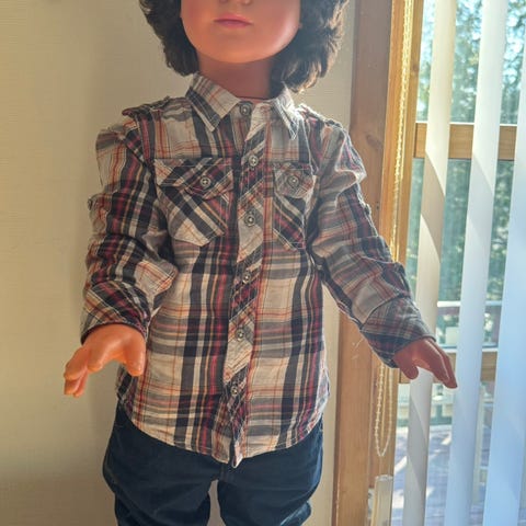 Håret er litt ugjevnt, så har nok fått en klipp. Ellers er dukken i fin stand.