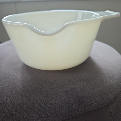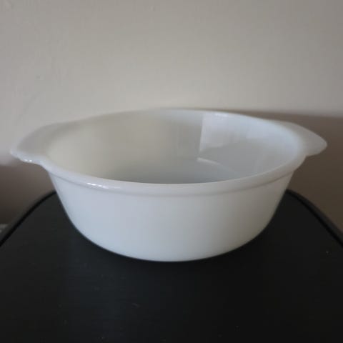 Flott hellebolle i hvit FireKing fra Anchor Hocking.