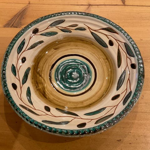 Ingen skader eller knagg, klare farger og blank glasur. Noen bittesmå hull i glasurer fra produksjonen. Se bilder. Litt krakkelering i bunnen under potten. (vanskelig å se)