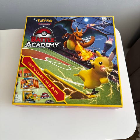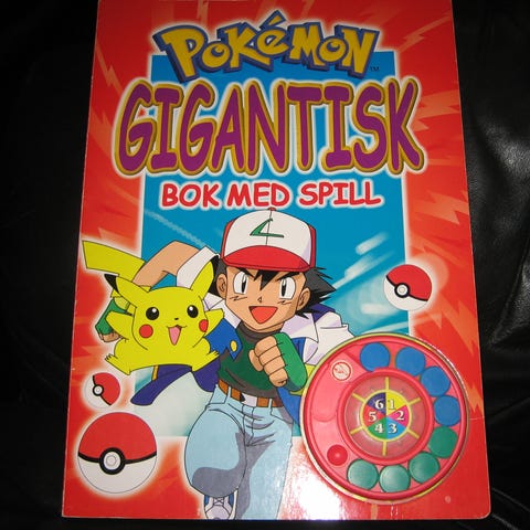 Pokémon Bli Pokémonmester bok, spill og terninger. Brettspill med instruksjoner på baksiden av esken. Produktet inneholder bok, spill og terninger med Pokémon-tema.