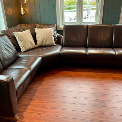 Selges en Ekornes Amigo sofagruppe bestående av 3-seter, 2-seter og stol – et ekte samleobjekt for deg som verdsetter kvalitet og tidløs design.