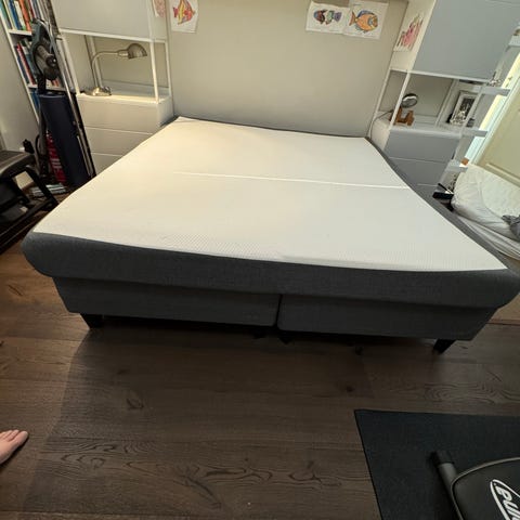 Den ene madrassen har fast fasthet, den andre medium. Double system - Fasthet kan justeres ytterligere ved å vende madrassene.