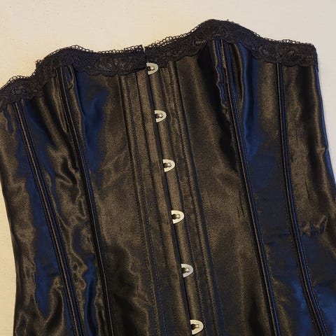 korsett, sort korsett, sateng korsett, satin corset, waist corset, snørekorsett, elegant topp, black corset, minimalistisk fashion, classy outfit, vintage stil, burlesque, kvinneklær, topper dame, festantrekk, corset top, sexy korsett, midjekorsett, moteplagg