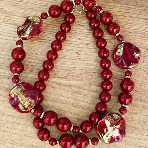 Collier / klavelignende halssmykke med litt store perler.