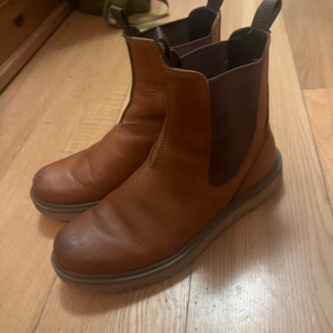 Meget pene støvler i brunt syntetisk skinn med 100% ullfor, størrelse 41. Sålemål innvendig ca 26,5-27 cm. Lite brukt. TEX membran gjør dem vanntette. Praktisk glidelås på innsiden. Nypris ca kr 1100,-, selges for kun kr 350,-, eller gi bud. Må hentes hos selger, kontant oppgjør (vipps).