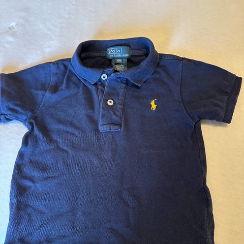 Ralph Lauren Hvit Polo T-skjorte for barn i størrelse 74, designet for gutter. T-skjorten har korte ermer, krage med knappelukking og er laget av bomullsmateriale. Den har Ralph Laurens logo brodert på brystet. Pent og lite brukt.