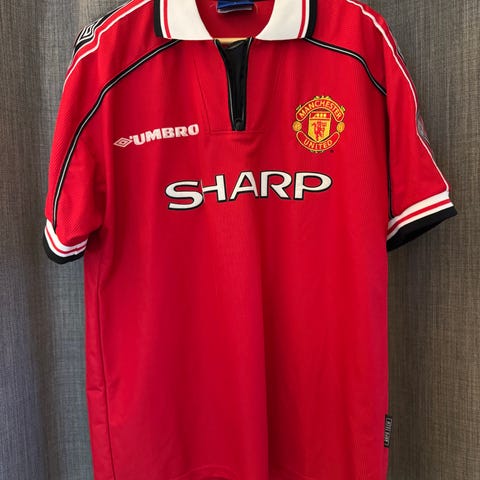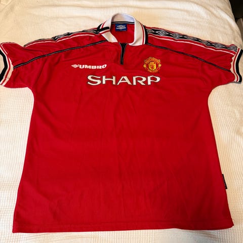 Manchester United, Premier League, fotballdrakt, fotballtrøye, drakt, fotballklær, fotballskjorte, fotballgenser, supporterutsyr, supporterdrakt, fotball, ManU, Man Utd, Man United, football jersey, soccer, kit, football shirt, gammel, retro, vintage, Umbro, Alex Ferguson,