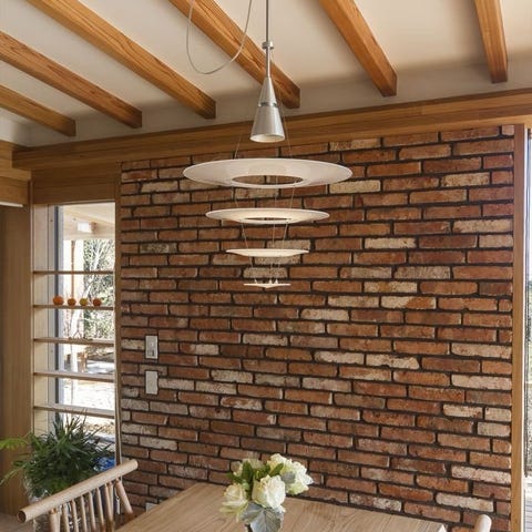 Collage 600 taklampe fra Louis Poulsen er laget av trelag med matt hvit akryl og et vakkert mønster i lagene. Dette gir en spennende lyseffekt. Mesteparten av lyset rettes nedover, og noe lys slippes også ut fra sidene. Collage taklampe er 60 cm i diameter og gir et blendefritt, rundstrålende allmennlys. Den er dimbar. Kabelen er 64 cm lang.