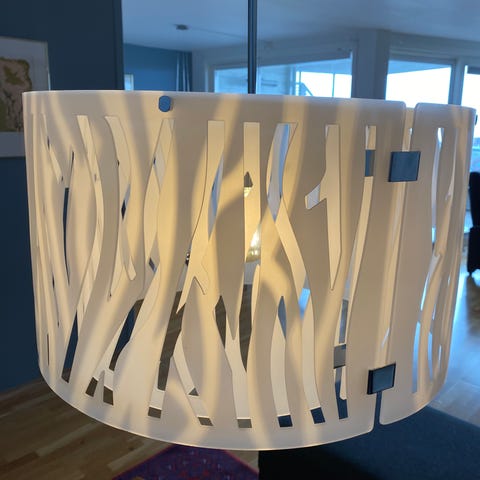 Nydelig lampe som gir et fantastisk lys. Den har hengt over spisebord. Ingen merker/skader, så god som ny.