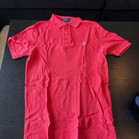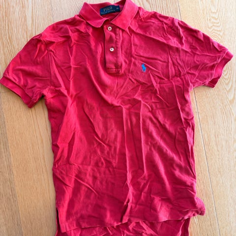 Ralph Lauren Polo Slim Fit pikéskjorte i rød farge, størrelse XS for herre. Laget i bomullsmateriale med klassisk krage og knappestolpe. Passer til hverdagsbruk og uformelle anledninger.