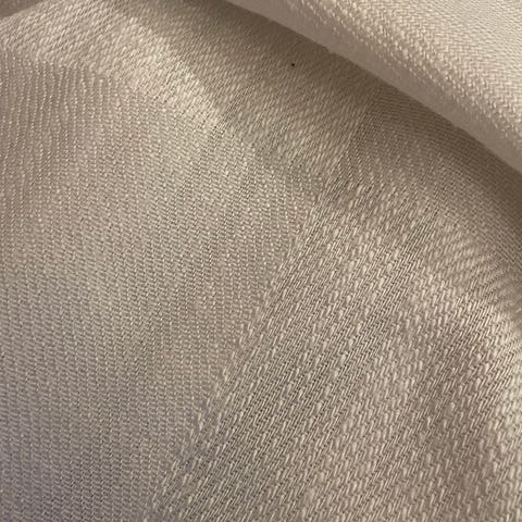 Hvite enkle bomullsgardiner selges. Enkel vev med innvevd strukturgarn-stripe. Bred løpegang.