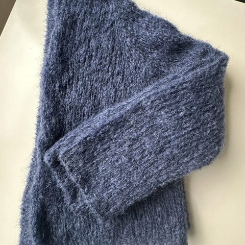 Høstjakke fra Pickles strikket i Pickles tjukk merino og Kid silk mohair.