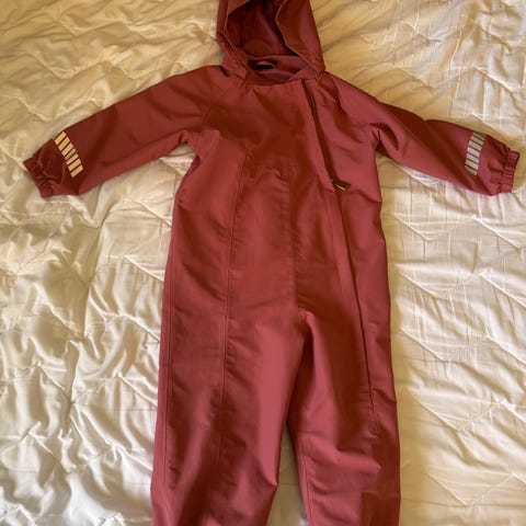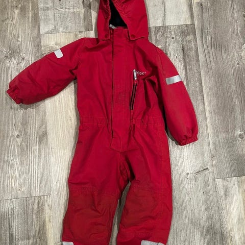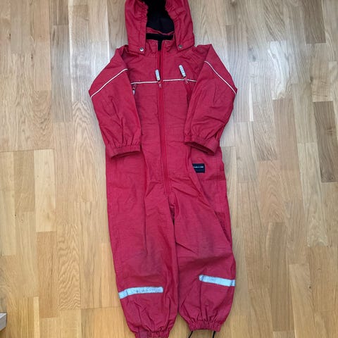 Polarn O. Pyret barnedress i størrelse 116, egnet for barn 5-6 år. Dressen er rød og unisex, laget for å gi beskyttelse og komfort til barn under utendørsaktiviteter.
