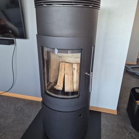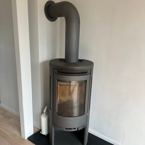 Contura 510 grå vedovn fra 2009. Ovnen har stått i sommerhytte er brukt to ganger, fremstår som ny. Høyde 101cm bredde 49cm dybde 46 cm. Senter på røykerør 85.5 cm.Plate under 78x 99cm
