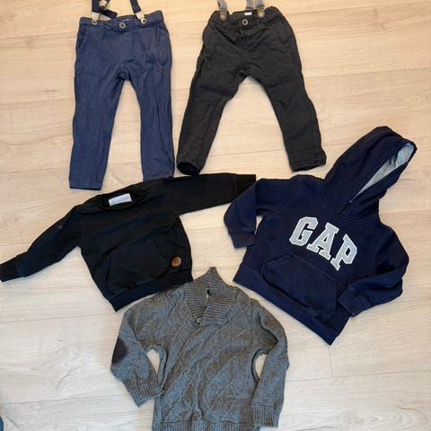 En genser og bukse fra polarn o pyret. Ett sett fra Lindex, en jeans fra Lindex, en genser fra Lindex, en genser fra Adidas, genser fra KappAhl og en jeans fra Zara.
