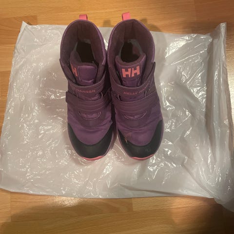 Helly Hansen barnesko i størrelse 32, designet for jenter. Skoene er lilla med justerbare borrelåser og slitesterk såle. Egnet for utendørs bruk og gir støtte og komfort for barnets føtter.