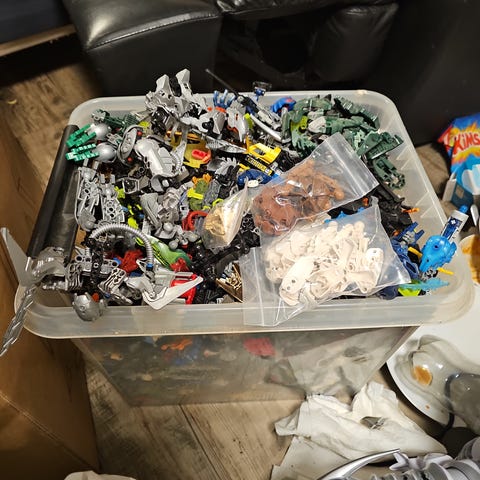Mye variert LEGO, liggerti denne boksen i altfor mange år. Ser etter ny eier. Dette er LEGO fra barndommen vår, så kjøpt i butikk ca 1990 - 2009 perioden. Så garantert mye sjeldne ting som ligger oppi, en god del fra Star wars, Bionicle og mye random greier.