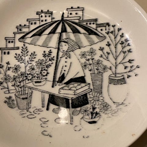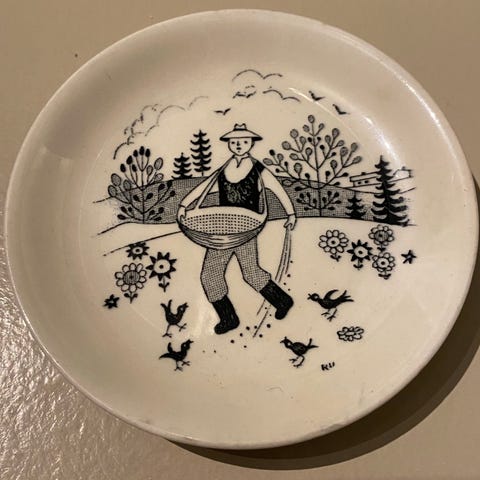 Sjeldne middagstallerkener fra arabia Finland motiv Crayfish designet av Anja Juurikkala i 1950 tallet.