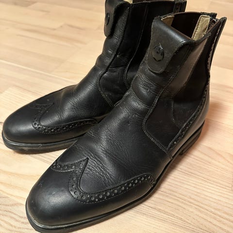 Ridestøvlene er kun brukt noen få ganger. Ingen slitasjemerker og glidelås og knapper virker som de skal.