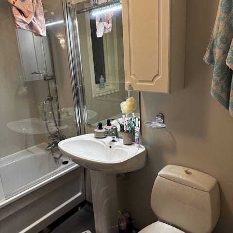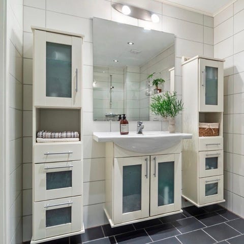 Skal rive et bad fra 90-tallet med møbler i denne stilen i løpet av november, alt gis bort.